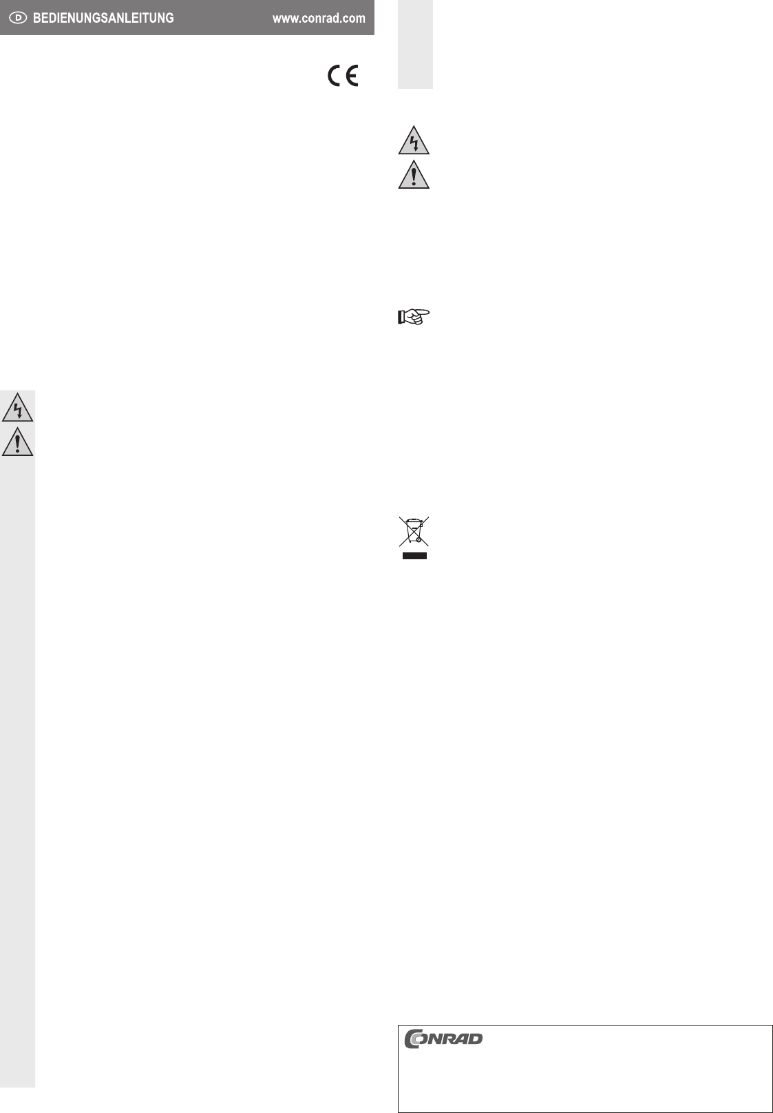 Diese Bedienungsanleitung ist eine Publikation der Conrad Electronic SE, Klaus-Conrad-Str. 1,