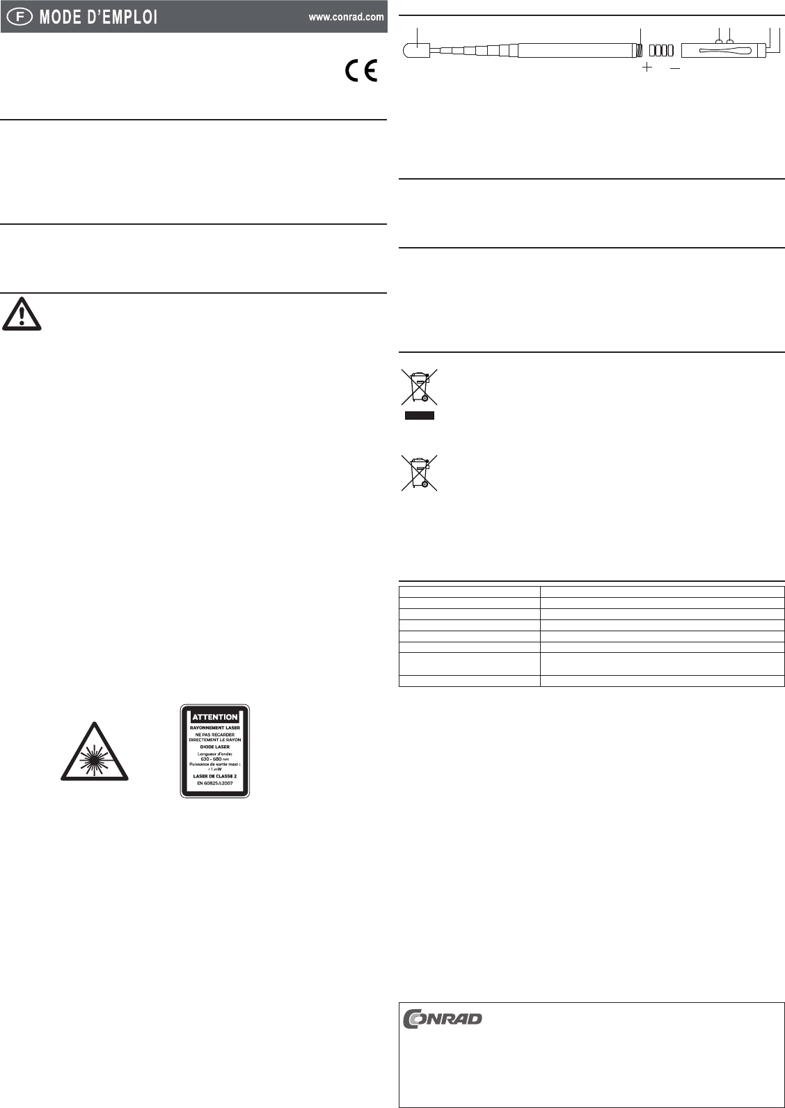 Ce produit inclut un pointeur à laser rouge, une torche DEL, un pointeur et un stylo. Le produit est alimenté