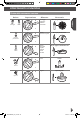 U Uso degli accessori Installazione/Rimozione dei dischi per grattugiare, per patatine fritte e per parmigiano 1 Posizionare l’adattatore nell’albero di trasmissione. 2 Ruotare leggermente il disco fino a portarlo nella posizione corretta sull’adattatore. Punto di presa per le dita 3 Montare il coperchio, allineare le linguette e bloccare il coperchio in posizione.
