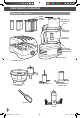 Componenti e funzioni Componenti e accessori Italiano KIT PER TAGLIARE A DADINI ➃ Coperchio del kit per tagliare a dadini Ciotola dello chef da 2,4 L Disco per affettare regolabile esternamente (sottile o spesso) ➂ Lama del kit per tagliare a dadini da 8 mm ➁ Griglia del kit per tagliare a dadini Disco per grattugiare reversibile (2 mm e 4 mm) Spremiagrumi ➄ Strumento di pulizia della griglia da 8 mm Disco per grattugiare parmigiano/tritare ghiaccio Disco per patatine fritte Adattatore per spremi