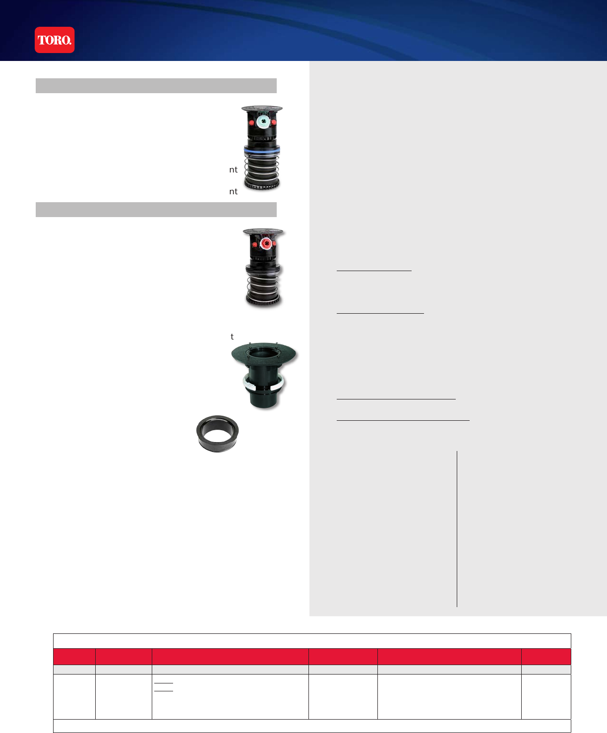 www.toro.com / e Toro Company, Irrigation Division / 5825 Jasmine Street, Riverside, CA 92504 / 877-345-8676 / Specications subject to change without notice / © 2015. All rights reserved / P/N 15-5060-IG