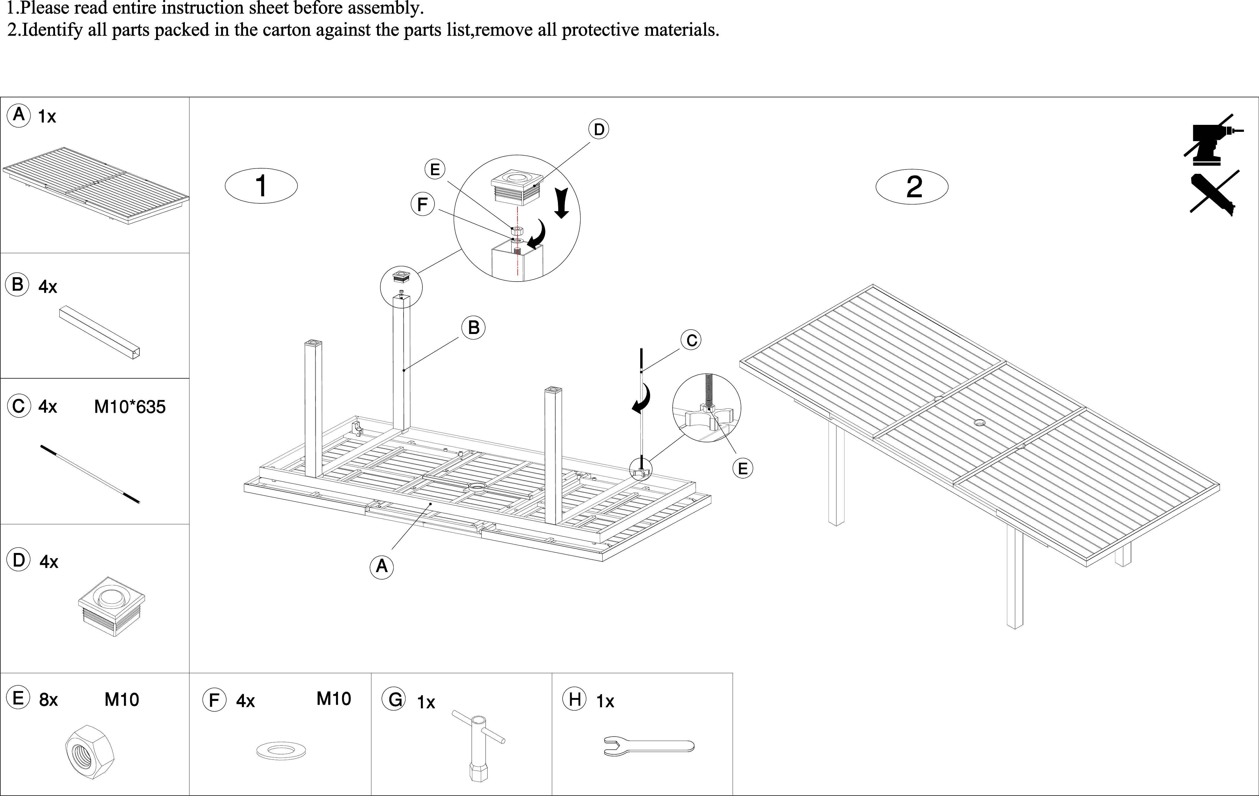 emblem. 2.Identify all parts packed in the carton against the parts list,remove ad entire instruction sheet before ass 1.Please re all protective materials.