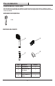 Pre-Installation PLANNING INSTALLATION Before beginning the installation of this product, ensure all parts are present. Compare parts with the Package Contents. If any part is missing or damaged, do not attempt to install the product. TOOLS REQUIRED Wrench PACKAGE CONTENTS A B D C Part Description Quantity A Handshower 1 B Shower Arm Mount 1 C Hose 1 D Thread sealant tape 1 3 HOMEDEPOT.COM Please contact 1-877-527-0313 for further assistance.