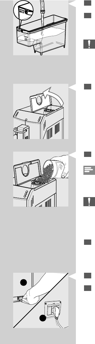 In den Behälter dürfen ausschließlich Ka eebohnen eingefüllt wer-