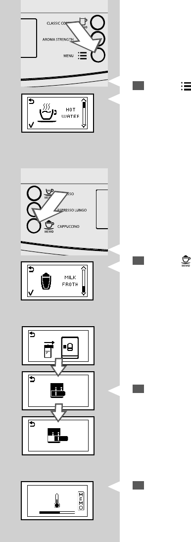 Die Taste “ ” für die Anwahl der aufgeschäumten Milch gedrückt hal-