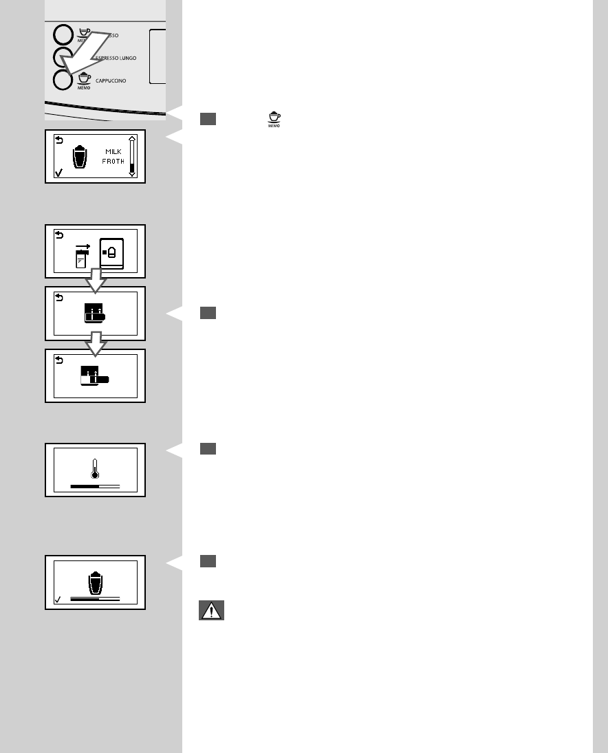 Die Taste “ ” drücken, um die aufgeschäumte Milch anzuwählen.