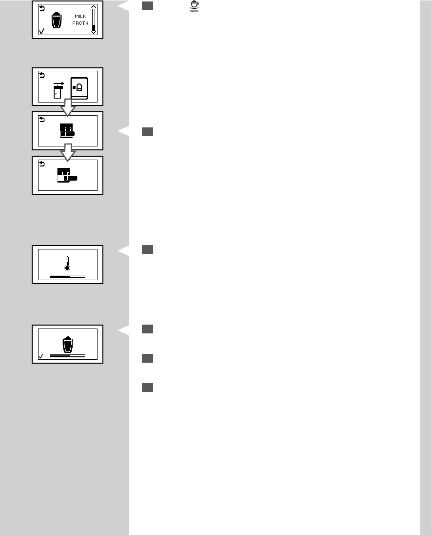 Die Taste “ ” drücken, um die aufgeschäumte Milch anzuwählen.