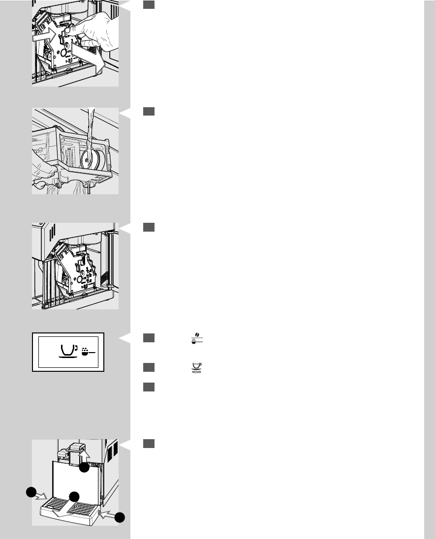und die Servicetür ö nen. Die Brühgruppe herausnehmen.