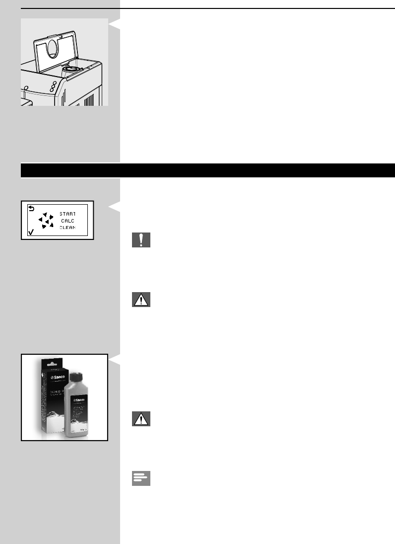 Wird das Symbol “START CALC CLEAN” angezeigt, so muss das Entkalken