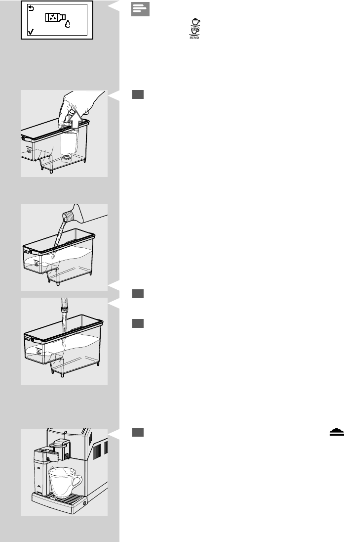 Das gesamte Entkalkungsmittel in den Wassertank einfüllen. Dann den