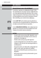 NEDERLANDS Alarmmeldingen (rood) Exx De machine heeft een storing. Rechtsonder in de hoek van het display wordt de foutcode weergegeven. Raadpleeg voor de foutcodes 1 - 3 - 4 - 5 het hoofdstuk "Oplossing van problemen", volg voor de andere codes de volgende aanwijzingen op: Zet de machine uit. Zet deze na 30 seconden weer aan. Probeer dit 2 of 3 keer. Als de machine niet start, neem dan contact op met de Philips hotline in uw eigen land en vermeld de foutcode aangegeven op het display.