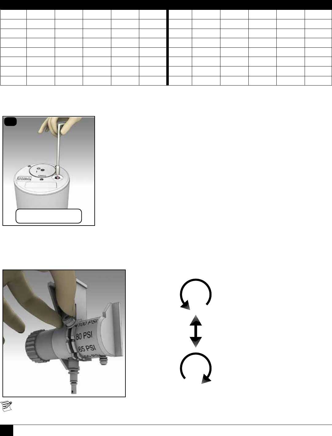 Het sprinkler stuurventiel kan ingesteld worden op vier verschillende druk instellingen: 50, 65, 80 of 100 psi (3,5, 4,6, 5,6 of