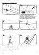 - 2 3 2. Use anteojos de seguridad antes de perforar los orificios piloto. 4 3. Atornille los ganchos de tornillo (no incluidas). 5 4c 4a 4b 4a. Determine la altura deseada para colgarlo, deslice el gancho para colgar el alambre a través de la cadena. 4b. Inserte el gancho colgante en las aperturas de la abrazadera de montaje. Repita para la otra abrazadera de montaje. 4c. Conecte la cadena al gancho de tornillo y repita para la otra cadena y gancho. 5. Sujete las abrazaderas de montaje a la lámpara.