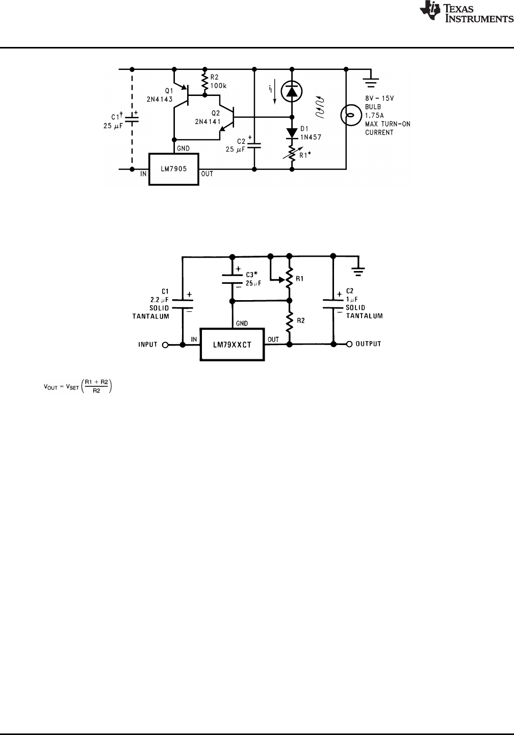 †Necessary only if raw supply filter capacitor is more that 2″ from LM7905
