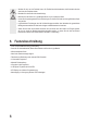 • Wenden Sie sich an eine Fachkraft, wenn Sie Zweifel über die Arbeitsweise, die Sicherheit oder den Anschluss des Produktes haben. • Betreiben Sie das Gerät nicht unbeaufsichtigt. • Benutzen Sie das Gerät nur in gemäßigtem Klima, nicht in tropischem Klima. • Lassen Sie Verpackungsmaterial nicht achtlos liegen. Es könnte für Kinder zu einem gefährlichen Spielzeug werden.