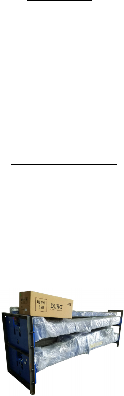 • The electric-hydraulic motor pump is packaged separately and banded to top of lift package.