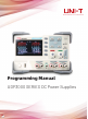Programming Manual UDP3000 Series Instruction List 1. *IDN? 2. *SAV 3. *RCL 4. INSTrument {CH1|CH2|CH3} 5. INSTrument ? 6. MEASure:CURRent? 7. MEAsure:VOLTage? 8. MEASure:POWEr? 9. [SOURce:]CURRent 10. [SOURce:]CURRent ? 11. [SOURce:]VOLTage 12. [SOURce:] VOLTage? 13. OUTPut 14. OUTPut:TRACk 15.OVP:STATus 16.OCP:STATus 17.OVP:SETting 18.OCP:SETting 19.OVP:VALUE? 20.OCP:VALUE? 21.Recall:STAT? 22. SYSTem:ERRor? 23. SYSTem:VERSion? 24. SYSTem: STATus? 1.