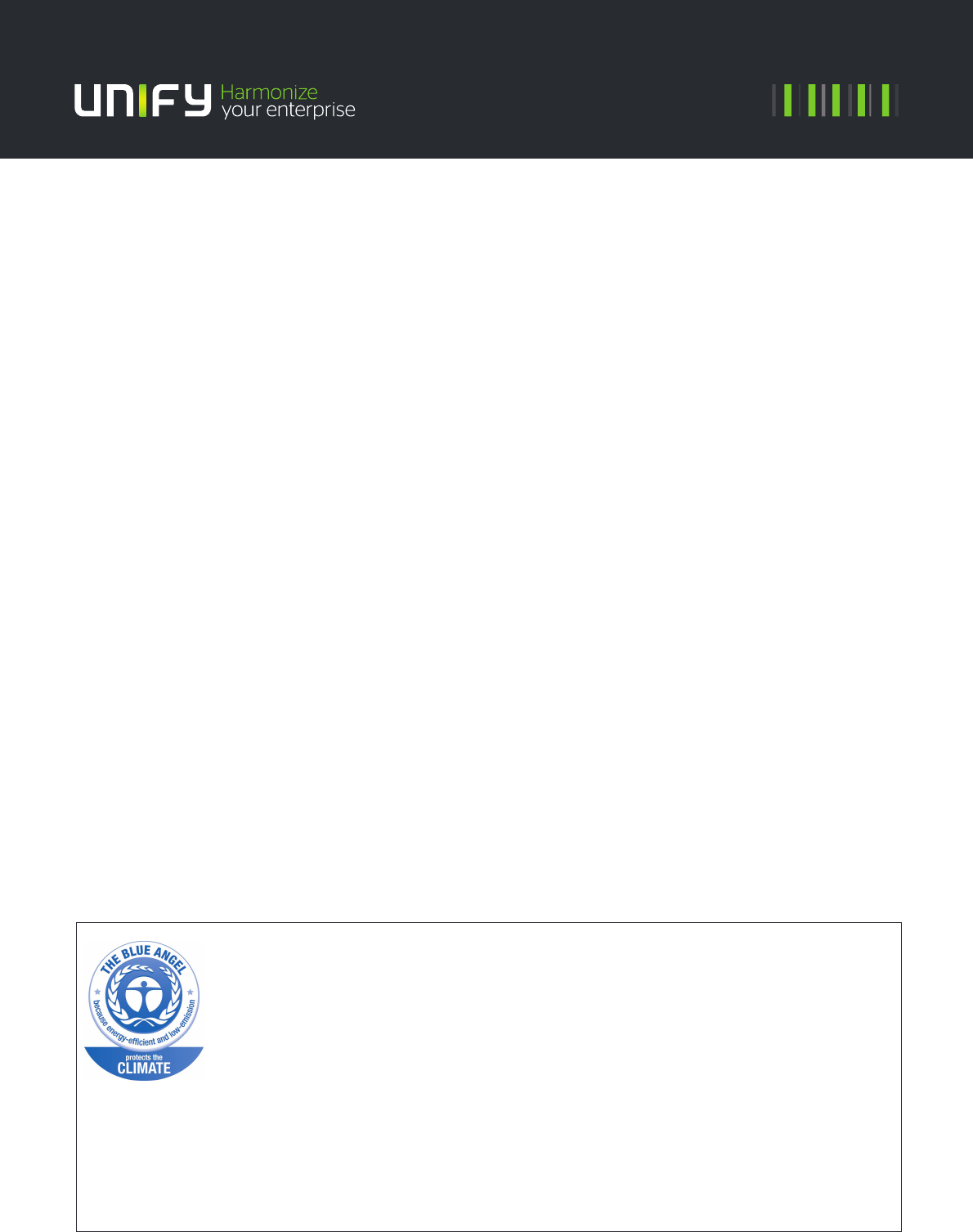 Unify is the first company to fulfill the high standards of THE BLUE ANGEL in protecting the environ-