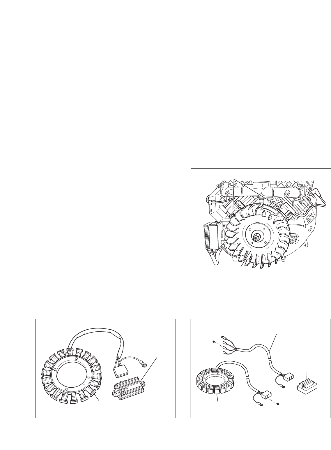 Multipolar charging coil is provided inside of flywheel. Charging capacity is 12V-15A or 12V-30A.