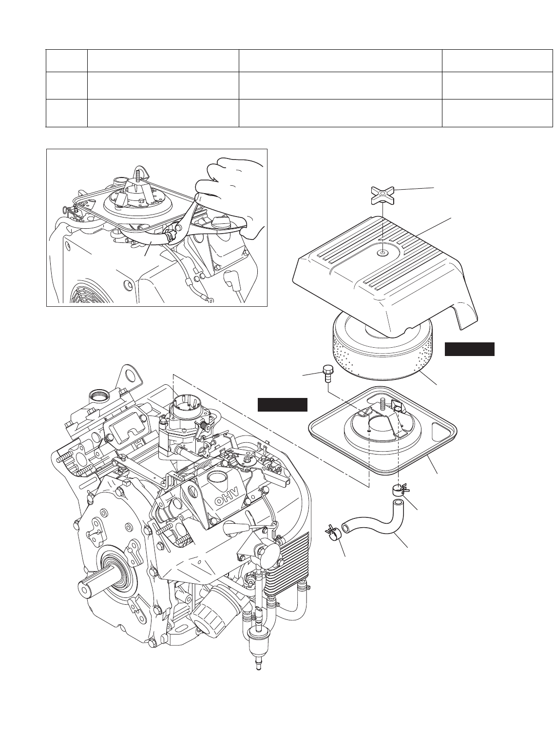 5 Air cleaner cover and elements Remove cleaner cover and cleaner element.