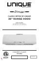 CLASSIC RETRO BY UNIQUE 36” RANGE HOOD MODEL NUMBERS: UGP-36CR RH W, UGP-36CR RH T, UGP-36CR RH LG, UGP-36CR RH B OWNER’S GUIDE serial number: OCT22V1 4002621