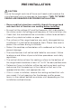 PRE INSTALLATION CAUTION Due to the weight and size of these vent hoods and to reduce the risk of personal injury or damage to the product, TWO, TO THREE PEOPLE ARE REQUIRED FOR PROPER INSTALLATION. • Please read the instructions carefully. Unpack the range hood and check that all functions are working before installing. • Ensure that the voltage (V) and the frequency (Hz) indicated on the sticker match the voltage and frequency at the installation site.
