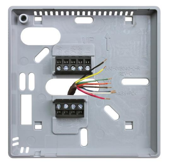 8. Reattach thermostat front to mounting base by first setting on at top of mounting base and