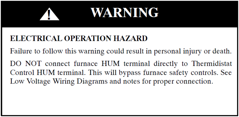 The humidify output connects directly to 24VAC operated humidifiers. An isolation relay may