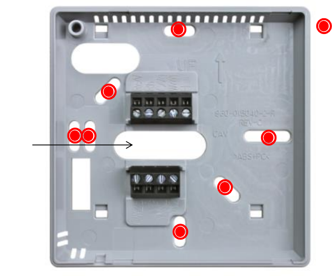 standard junction box, if desired. Hole pattern on the Thermostat mounting base matches