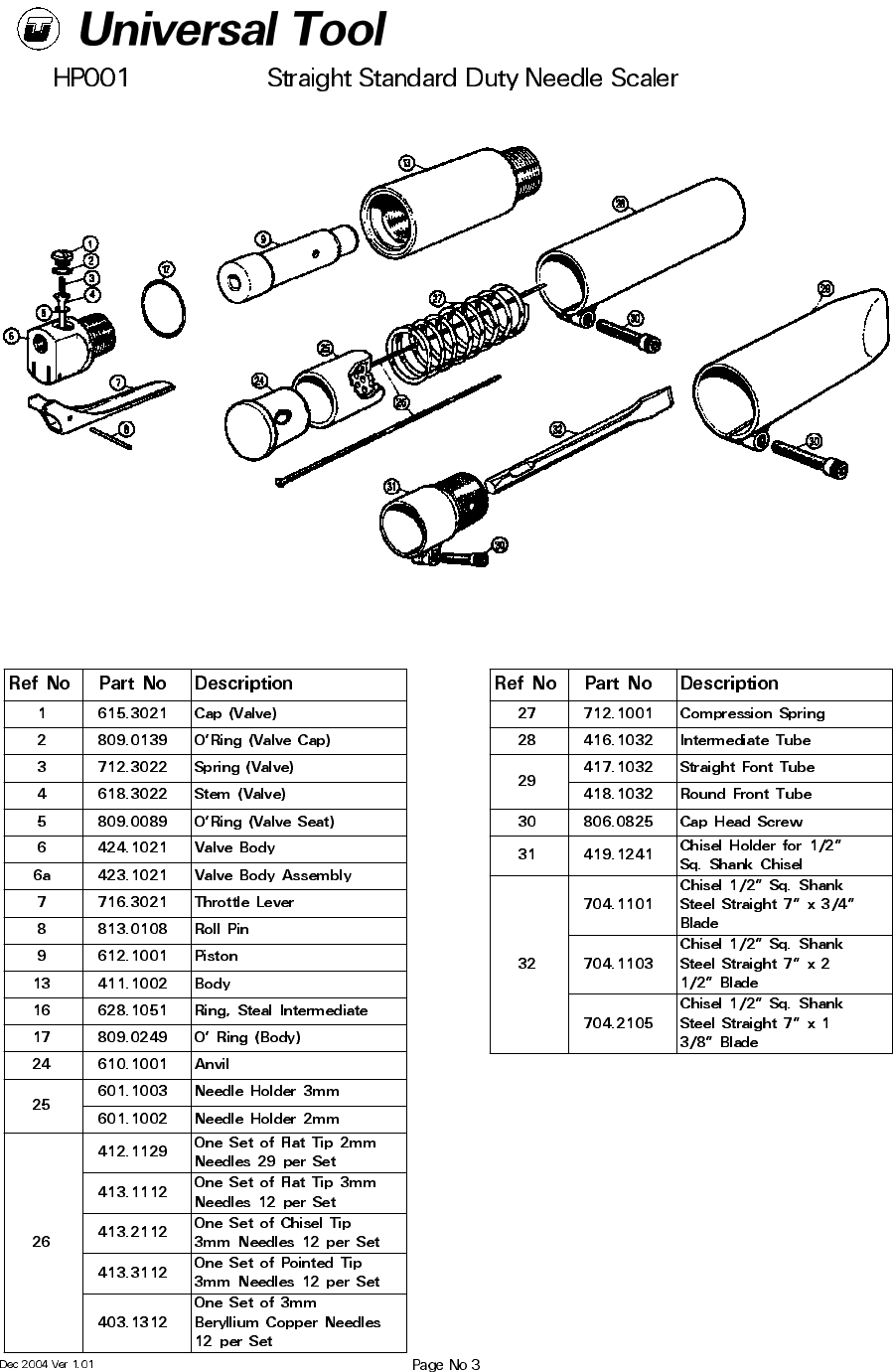 HP001 Ref No 1 2 3 4 5 6 6a 7 8 9 13 16 17 24 25 Part No 615.3021 809.0139 712.3022 618.3022 809.0089 424.1021 423.1021 716.3021 813.0108 612.1001 411.1002 628.1051 809.0249 610.1001 601.1003 601.1002 412.1129 413.1112 26 413.2112 413.3112 403.1312 Dec 2004 Ver 1.