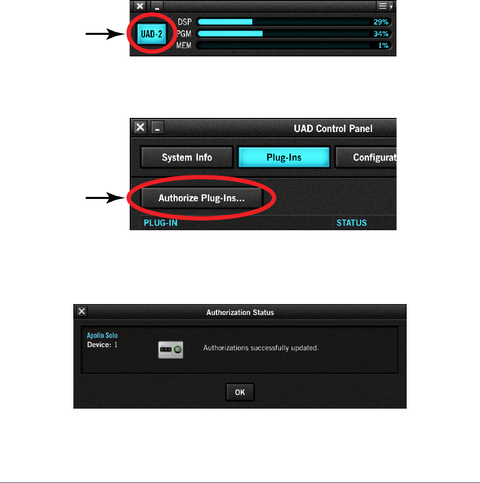To manually authorize UAD plug-ins to run on the UAD device: