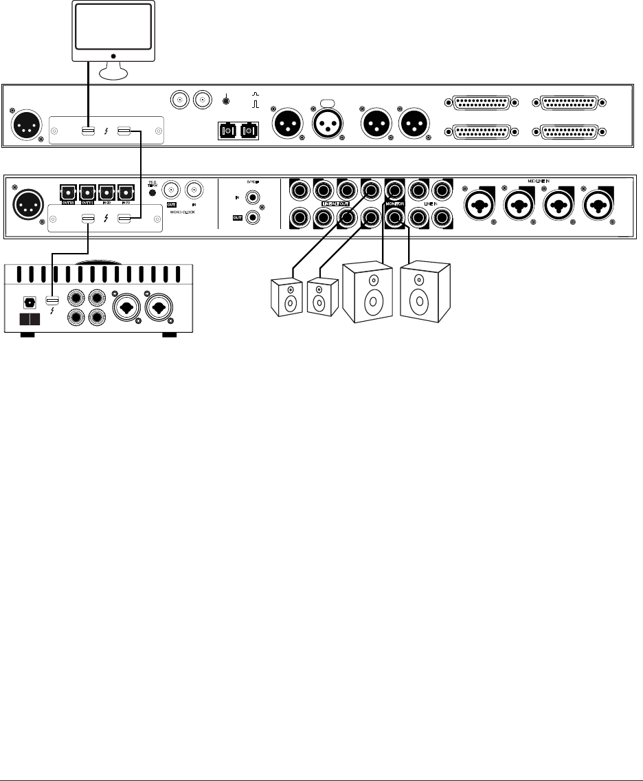 • A single Thunderbolt cable is required for all device interconnections. Connect one