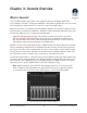 • Send/Return Auxiliary buses. Console has two pre/post stereo aux buses, with