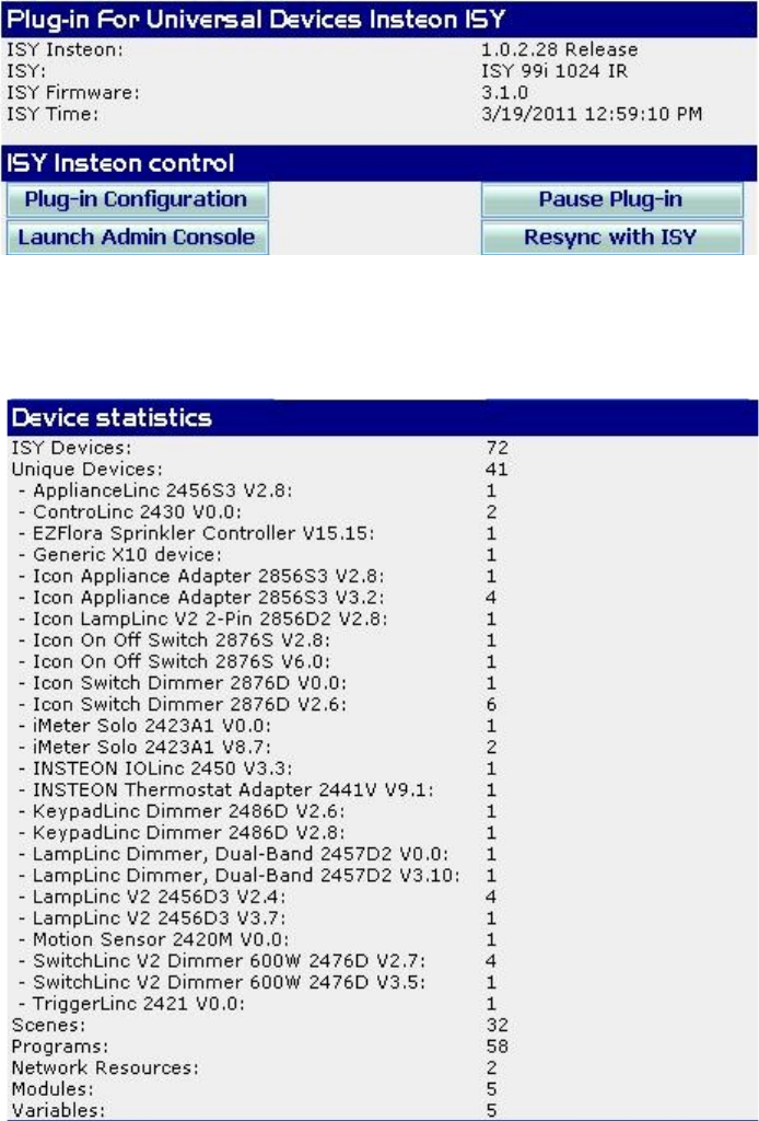 connection with the ISY. The Resync with ISY button will cause the plug-in to update it's