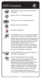 DVR Functions, continued • Press SKIP FWD to skip ahead about 30 seconds in the program. + + • Press PAUSE and then press BACK to reverse the program in slow motion at 1/4 the speed of normal play. Press BACK again to reverse at normal speed. • Press PAUSE and then press FWD to forward the program in slow motion at 1/15 the speed of normal play. Press FWD twice to forward at 1/4 as fast as normal play. Press FWD three times to play the program.