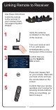 Linking Remote to Receiver Use these instructions to link the remote to the receiver if your receiver does not support System Wizard. 1 Verify the antenna is installed on the back of the receiver. REMOTE ANTENNA 2 Turn your receiver and TV on, and press SYSTEM INFO on the front panel of the receiver. SYSTEM INFO 3 Confirm that you see the System Info screen. 4 Press and release SAT on your remote. Wait until you hear a tone and see the remote listed on the screen.