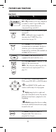 DIRECTV RC65RBX.fm Page 4 Wednesday, May 5, 2010 6:25 PM FEATURES AND FUNCTIONS Key Charts Press this key… To… Slide the MODE switch to the DIRECTV, AV1, AV2 or TV positions to select the component you want to control. A green LED under each switch position indicates the component being controlled. Press TV INPUT to select the available inputs on your TV. NOTE: Additional setup is required to deactivate the TV INPUT key. (See instructions on page 18.