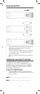 DIRECTV RC65RBX.fm Page 7 Wednesday, May 5, 2010 6:25 PM INSTALLING BATTERIES 1. 2. 3. On the back of the remote control, push down on the door (as shown), slide the battery cover off, and remove the used batteries. Obtain two (2) new AA alkaline batteries. Match their + and - marks to the + and - marks in the battery case, then insert them. Slide the cover back on until battery door clicks into place.