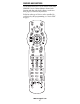 Tecla Función Use las teclas (1-9 y 0) para introducir directamente los canales (por ejemplo, 09). Para amplificadores de audio/ sintonizadores, use las teclas numéricas para seleccionar las entradas 1 al 10. Presione HD/Zoom una vez para cambiar el aspecto de la pantalla del programa que está viendo. (Esta función no está disponible en todos los convertidores de cable). Use PIP ON-OFF para encender o apagar la función Imagen en Imagen (si la función está disponible en su televisor).