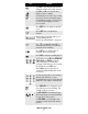 Funciones de las Teclas Tecla Función Presione SETUP para todas las secuencias de programación. Presione PWR una vez para encender o apagar los dispositivos (aparatos) de entretenimiento en el hogar. Para encendido maestro, vea “El Uso del Encendido Maestro” en la página 45. Presione AUX, DVD, AUD, TV, o CBL una vez para seleccionar el dispositivo que quiere controlar. También vea la “Tabla de Dispositivos” en la página 30.