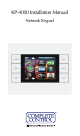 KP-4000 NETWORK KEYPAD In-Wall Installation Magnetic cover plate KP-4000 Two-Gang Wall Box 1. The KP-4000 installs in a standard two gang box. If in a retrofit installation, cut in and install a standard two gang p-ring or retro fit box (not included) into the wall. 2. Make connections for IR Out/RFTX-1, LAN, or Power Supply. For connections, refer to page 5. 3. Next, secure KP-4000 onto p-ring or retro fit box with the 4 included screws. 4.