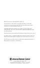 MX-780 Owner’s Manual ©2011 URC, Inc. The information in this manual is copyright protected. No part of this manual may be copied or reproduced in any form without prior written consent from Universal Remote Control, Inc. UNIVERSAL REMOTE CONTROL, INC. SHALL NOT BE LIABLE FOR OPERATIONAL, TECHNICAL OR EDITORIAL ERRORS/OMISSIONS MADE IN THIS MANUAL. The information in this manual may be subject to change without prior notice. Complete Control is a registered trademark of Universal Remote Control, Inc.