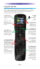 MX-780 OWNER’S MANUAL Specifications Microprocessor: ARM7TDMI FLASH: 32Mbit Nor FLASH Display: 1.46” PMOLED (128 x 128) Total Customization Capability: Up to 48 devices and up to 8 pages each for a total of 384 pages. Learning Capability: Standard frequencies (15kHz to 460kHz) Macro Capability: Up to 255 steps each IR Range (Line of Sight via Infrared): 30-50 feet, depending on the environment RF Range (radio frequency): 50 to 100 feet, depending upon the environment RF Frequency: 418MHz Weight: 8.5 oz.