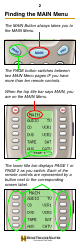 2 Finding the MAIN Menu The MAIN Button always takes you to the MAIN Menu. The PAGE button switches between two MAIN Menu pages IF you have more than ten remote controls. When the top title bar says MAIN, you are on the MAIN Menu. PAGE 1 The lower title bar displays PAGE 1 or PAGE 2 as you switch. Each of the remote controls are represented by a button next to the corresponding screen label.