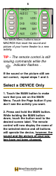 5 The MAIN Menu buttons issue MACROS that reset the sound and picture of your home theater to a new activity. TIP – The remote control is still issuing commands while the indicator flashes. . If the sound or the picture still are not correct, repeat steps 1 and 2. Select a DEVICE Only 1. Touch the MAIN button to make sure that you are on the MAIN Menu. Touch the Page button if you don’t see the activity you want. 2. Press and hold the MAIN button.
