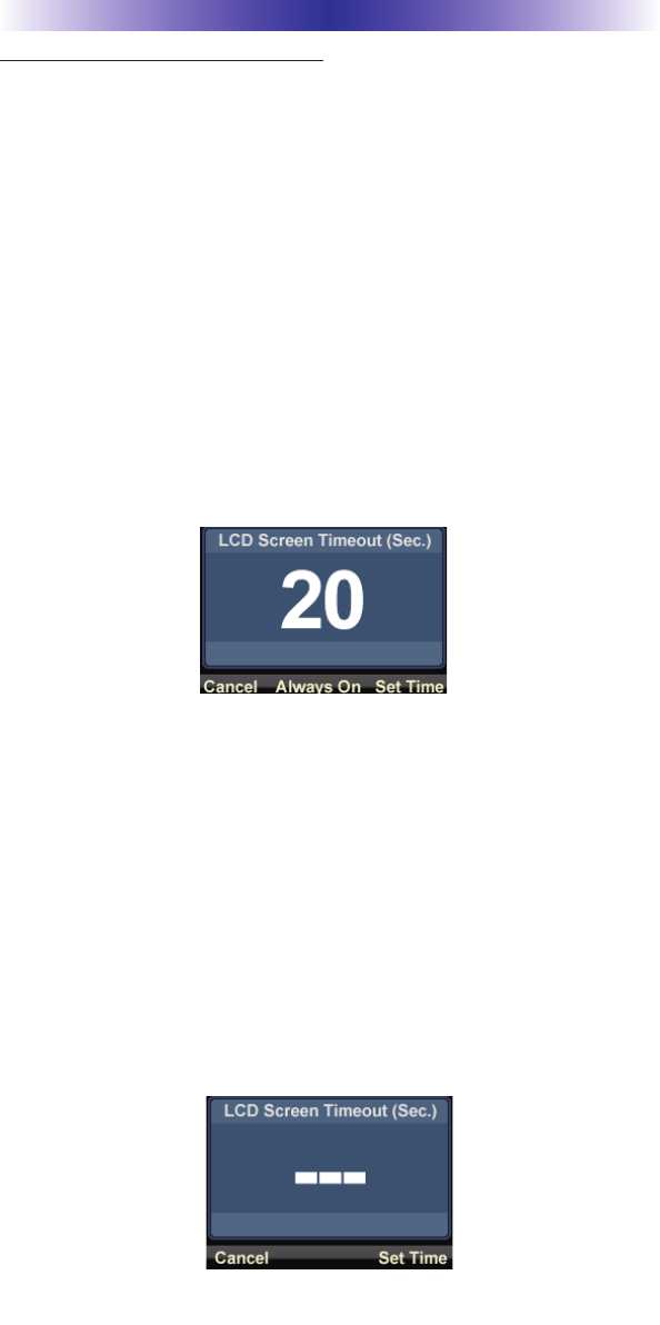 If you enter the LCD Screen Timeout (Sec.) screen with always on