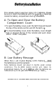 Battery installation This remote control uses four AAA 1.5 V batteries. Please be sure to match the batteries with the (+) and (-) markings inside the battery compartment during installation. A: To Open and Close the Battery Compartment Cover 1 To open the battery cover, push the latch forward toward the top of the remote control, and lift the latch up. I 2 To close the battery cover, slide the battery cover straight back in (toward the top of the remote) and push down until it “clicks” into place.