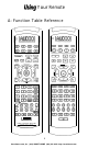 Using Your Remote Function Table No. Button Name Audio Functions SAT Functions TV Functions l-8 9 10 12 13 14 15 16 Device Name Power Mute TN Input VOL up VOL Down CH Up CH Down Up/Pause AUDIO (ON) On/Off (OFF) Mute Band/FM Vol up Vol Down Preset + Preset - SAT (ON) On/Off (OFF) Mute TV/SAT Vol up Vol Down Ch. + Ch. - TV (ON) On/Off (OFF) Mute TVlVideo Vol up Vol Down Ch. Up Ch. Down UP Down/Stop 18 19 20 RightfF.F.