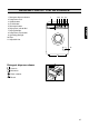 DESCRIPTION OF THE APPLIANCE 1 3 45 6 7 8 9 ENGLISH 01 Detergent dispenser drawer 02 Programme card 03 Option buttons 04 On/Off button 05 Door open button 06 Drying time selector dial 07 Drying pilot light 08 Programme selector dial 09 Operating pilot light 10 Filter 11 Adjustable feet 2 10 11 Detergent dispenser drawer Prewash Main wash Cl Fabric softener Bleach P0952 27