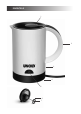 Istruzioni per l’uso Modello 28410 Dati tecnici Potenza: Dimensioni: Cavo di connessione: Peso: Colore: Capienza: Bricco: Coperchio: In dotazione: Accessori: 420-500 Watt, 220-240 V~, 50/60 Hz Circa 16,1 x 10,3 x 18,1 cm (L/A/Alt) Circa 75 cm Circa 0,82 kg Bianco Min. 95 ml, max.